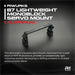 This lightweight one-piece servo mount, machined from a solid block of 7075 T6 aluminum, provides an exceptionally rigid mounting solution. No twisting or shifting of plastic or multiple pieces to worry about.