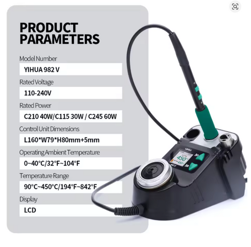 Original price $98.14 - Original price $98.14Original price $98.14$98.14$98.14 - $98.14Current price $98.14| /Only 1 left!YIHUA 982-V Soldering Station Rated Voltage 110-240V Rated Frequency 50-60Hz Rated Power 40W (210 Heating Element) ...